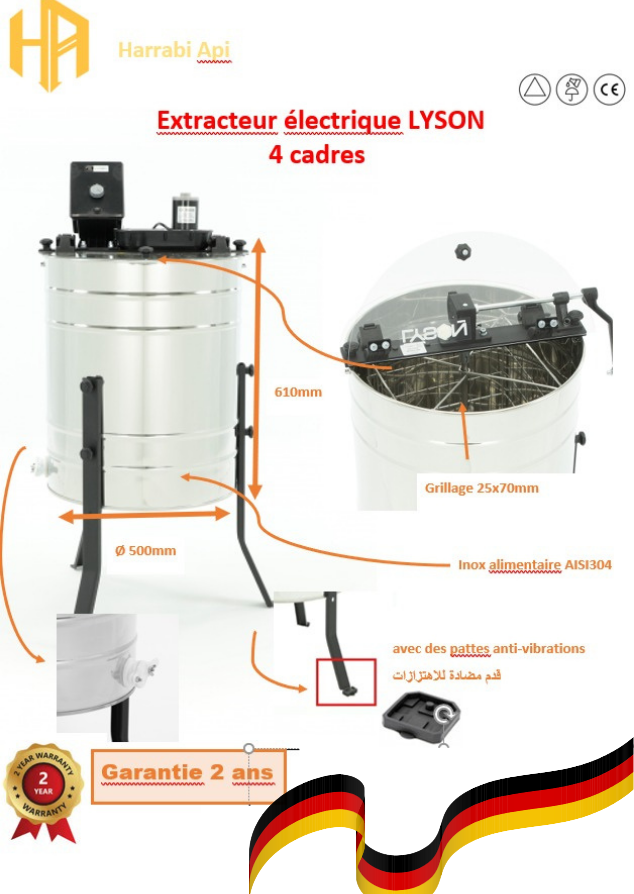 Cet extracteur de miel électrique 4 cadres est une solution pratique pour les apiculteurs amateurs et les petits ruchers. Grâce à son moteur électrique et à son contrôleur simple, la vitesse de rotation peut être facilement réglée pour une extraction efficace du miel.