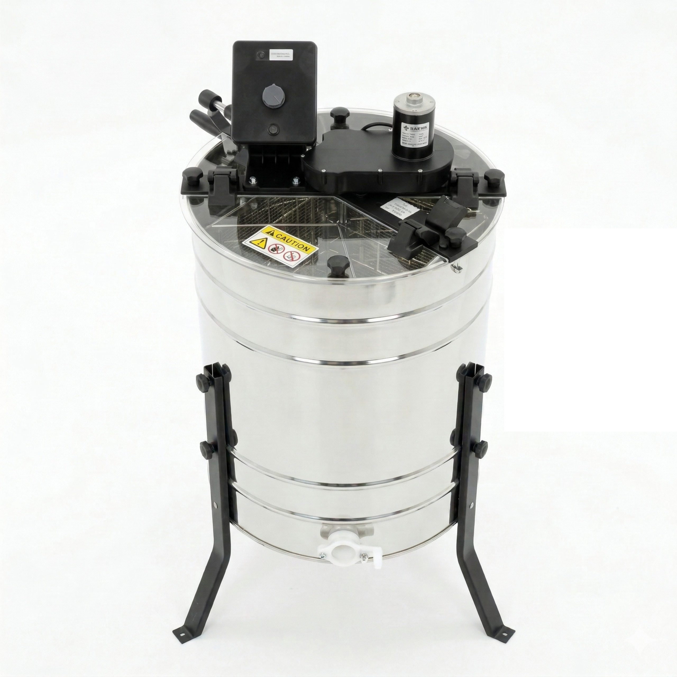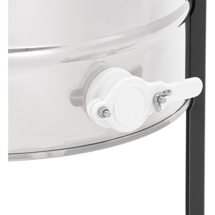 Le tambour en acier inoxydable de Ø500 mm garantit une grande durabilité et une hygiène parfaite. Le fond profilé permet au miel de s’écouler rapidement vers le robinet de vidange, ce qui facilite le travail et le nettoyage.